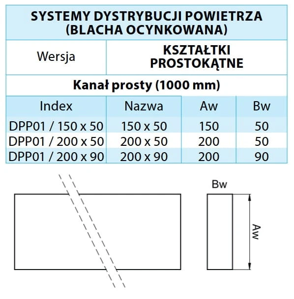 KANAŁ PROSTOKĄTNY PROSTY OCYNK 200X90 1MB