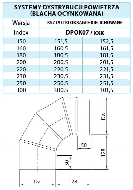 Całe kolano wykonano z blachy ocynkowanej, co zapewnia niezawodną pracę systemu.