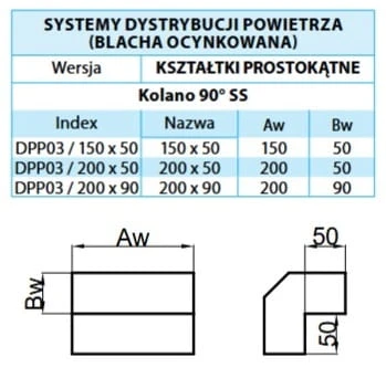 KOLANO OCYNK 200X50 90ST ŚCIANA STROP