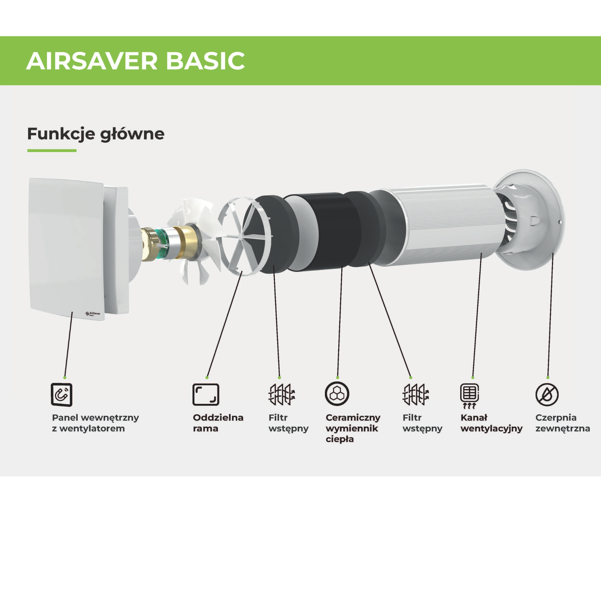 REKUPERATOR ŚCIENNY AIRSAVER BASIC PRODMAX fi 100 sterowany pilotem