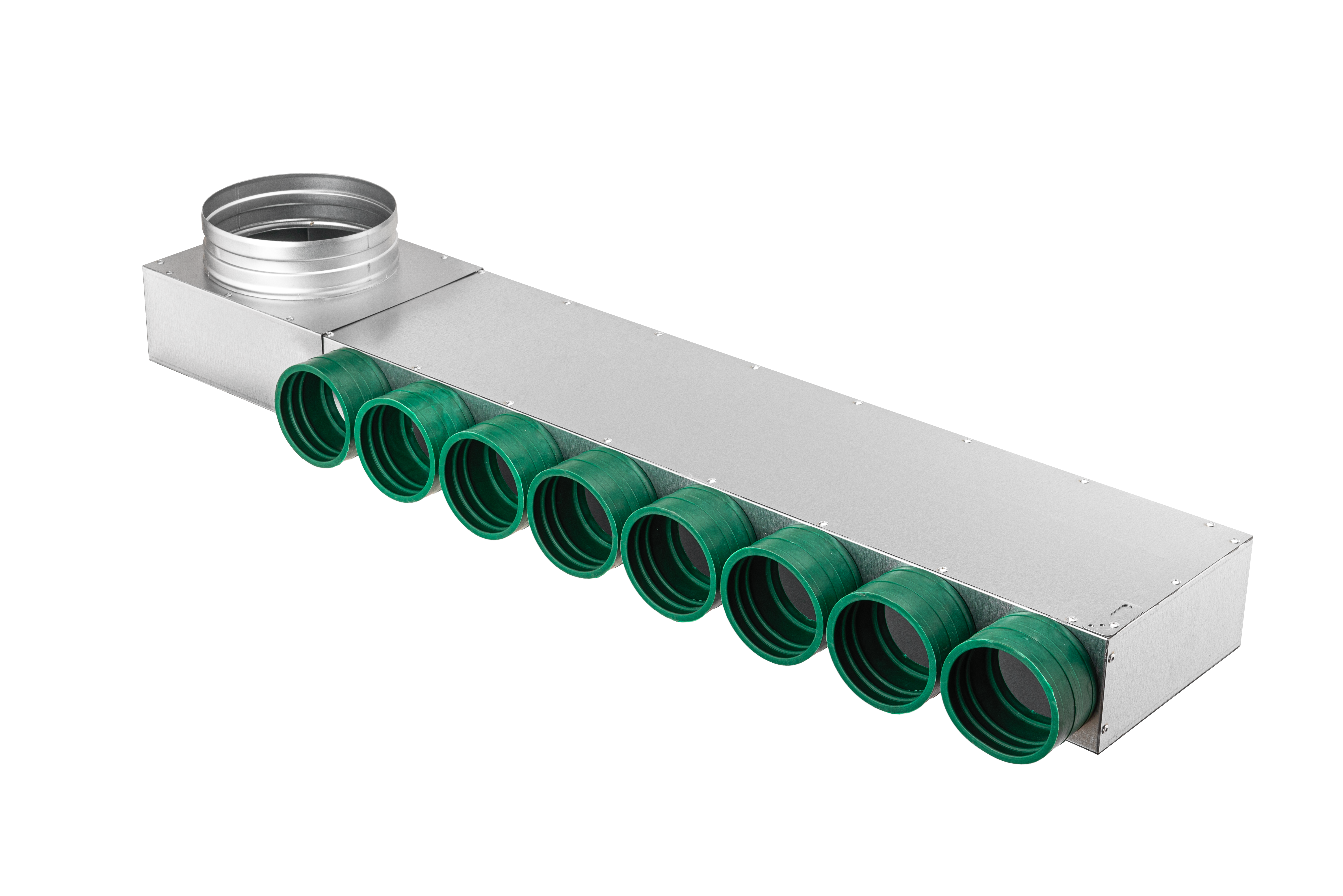 Korpus rozdzielacza wykonany jest z blachy ocynkowanej a króćce ze specjalnie opracowanej mieszanki tworzywa, które charakteryzują się wysoką elastycznością nawet przy niskich temperaturach (do -50°C).