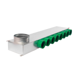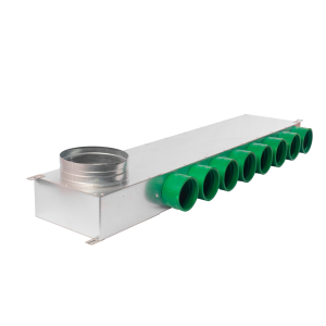 Korpus rozdzielacza wykonany jest z blachy ocynkowanej. Dodatkowo, niewielkie wymiary pozwalają na jego wygodne umieszczenie w stropie lub dyskretne ukrycie w ścianie, co ułatwia estetyczny montaż i oszczędność przestrzeni.