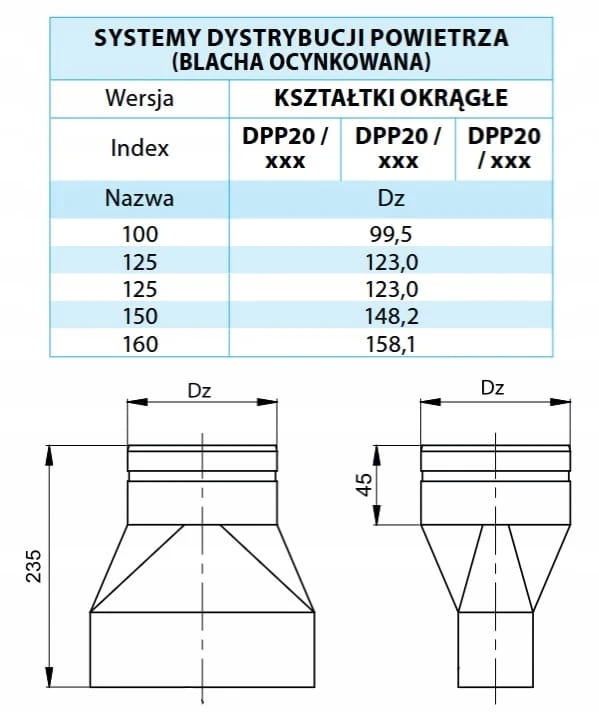 REDUKCJA SYMETRYCZNA OKRĄGŁA 200X50 FI 100