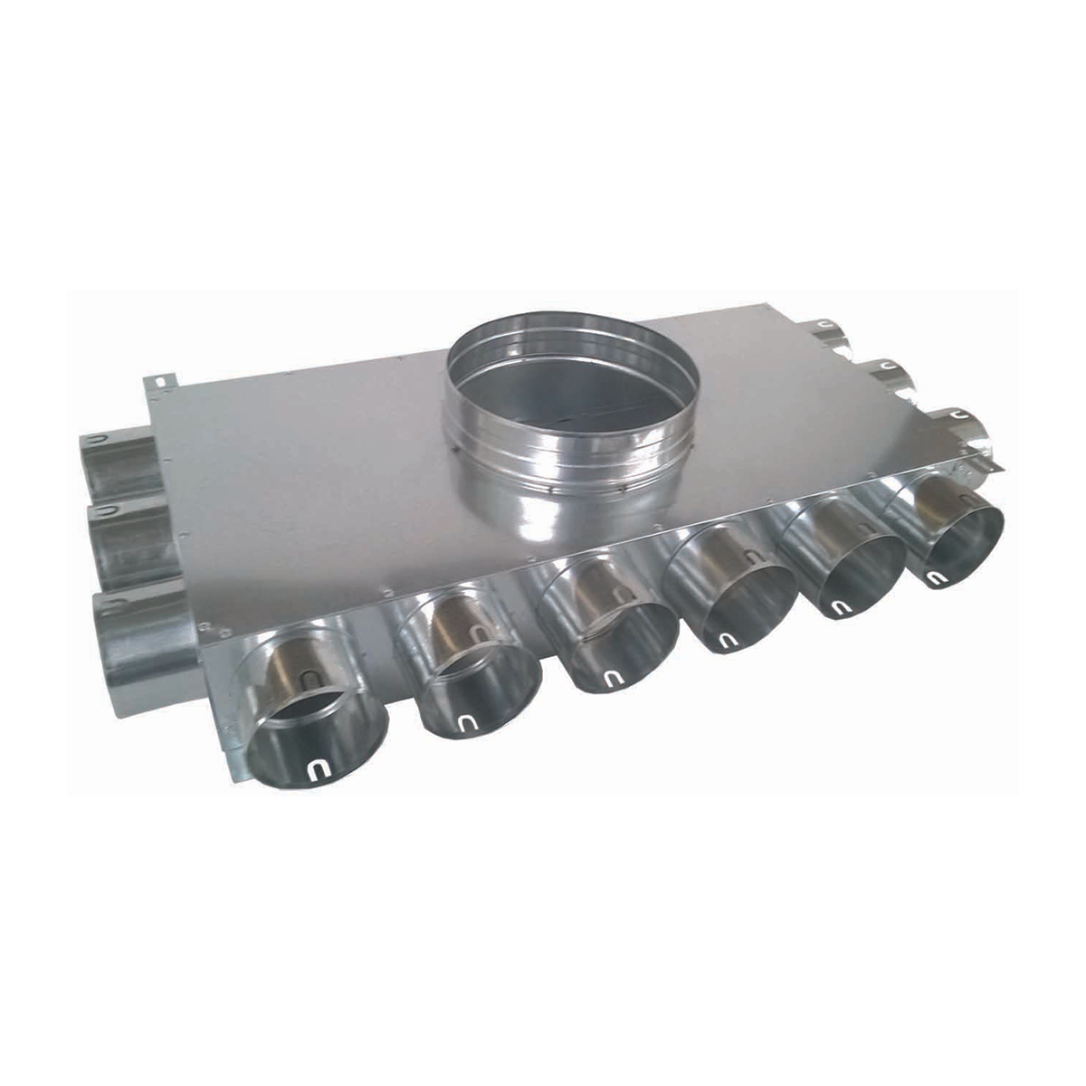 Cały rozdzielacz wykonano z wysokiej jakości blachy ocynkowanej, odpornej na korozję i uszkodzenia mechaniczne, co zapewnia długą żywotność oraz niezawodną pracę systemu. Aby zachować wysoką szczelność wymagane są dodatkowe uszczelki.