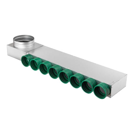 Korpus rozdzielacza wykonany jest z blachy ocynkowanej. Dodatkowo, niewielkie wymiary rozdzielacza pozwalają na jego wygodne umieszczenie w stropie lub dyskretne ukrycie w ścianie, co ułatwia estetyczny montaż i oszczędność przestrzeni.