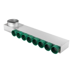 Korpus rozdzielacza wykonany jest z blachy ocynkowanej. Dodatkowo, niewielkie wymiary pozwalają na jego wygodne umieszczenie w stropie lub dyskretne ukrycie w ścianie, co ułatwia estetyczny montaż i oszczędność przestrzeni.