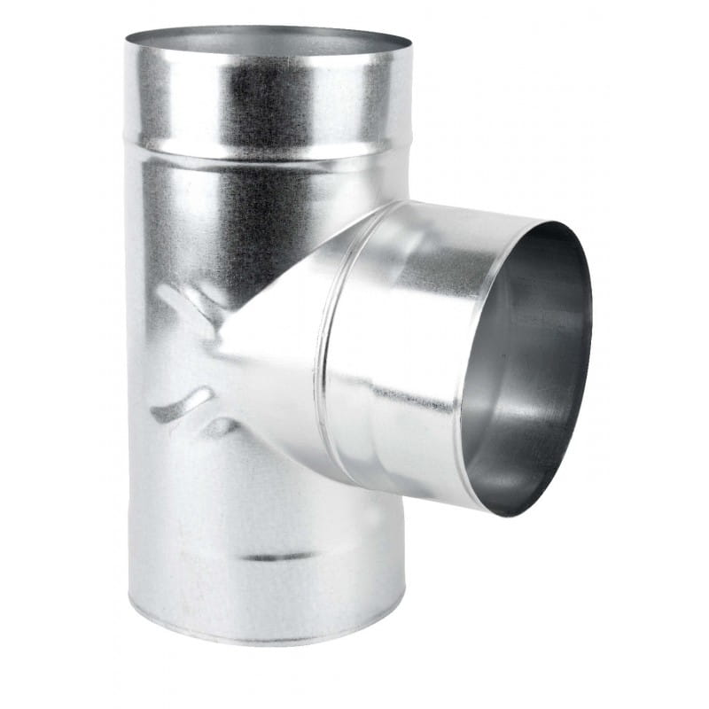Cały trójnik wykonano z wysokiej jakości blachy ocynkowanej 0,5mm, odpornej na korozję i uszkodzenia, co zapewnia długą żywotność oraz niezawodną pracę systemu.