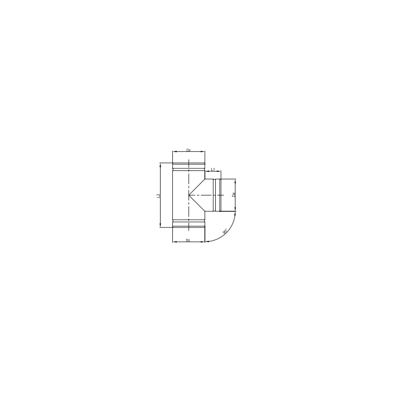 Cały trójnik wykonano z wysokiej jakości blachy ocynkowanej 0,5mm, odpornej na korozję i uszkodzenia mechaniczne, co zapewnia długą żywotność oraz niezawodną pracę systemu.