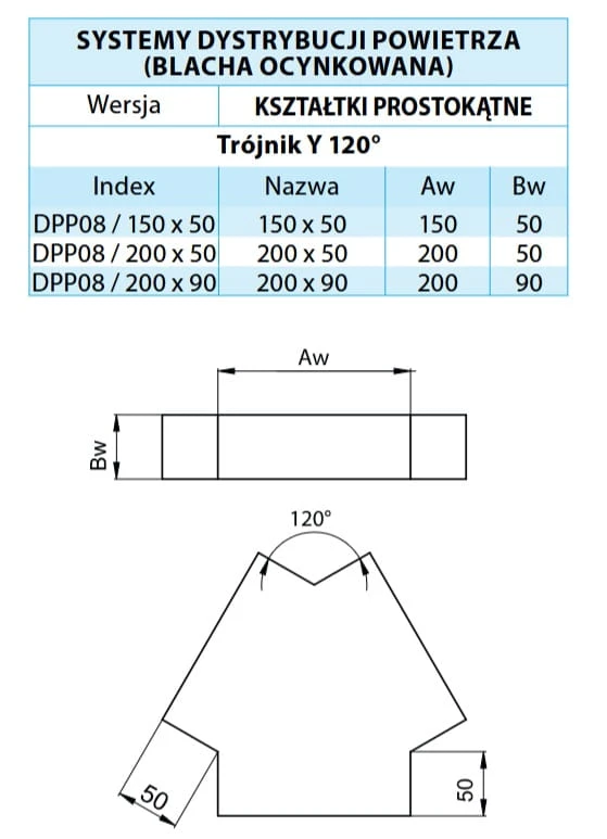 Trójnik 120° płaski prostokątny wykonany z wysokiej jakości blachy ocynkowanej, zgrzewanej metodą punktową, to solidny element systemu wentylacyjnego, służący do rozdzielenia przepływu powietrza z jednego kanału na dwa odgałęzienia pod kątem 120°.